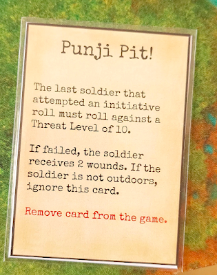 Las cartas que trae la expansión cubren casi todas las opciones de armamento o habilidades, en este caso para Vietnam, pero me he permitido añadir otras de cosecha propia, como la carta de la mina Claymore, que veremos más adelante.